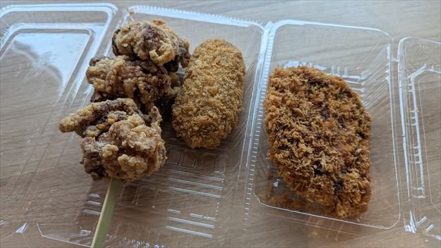 9:13 売上No1の長いもと牛肉のコロッケ(中)、No2の串山賊焼(左)、No3の長いもと豚肉のメンチカツ