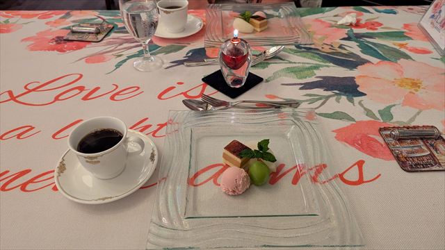 19:36 デザート ケーキ、アイス、フルーツ、コーヒーor紅茶