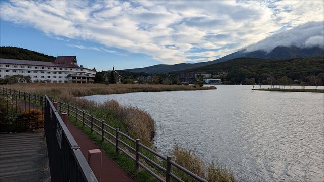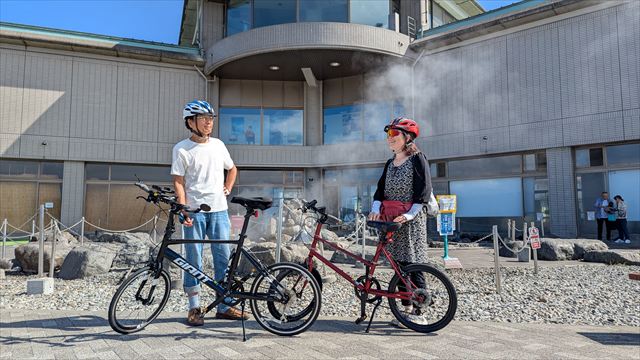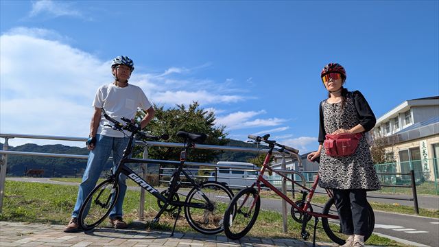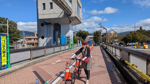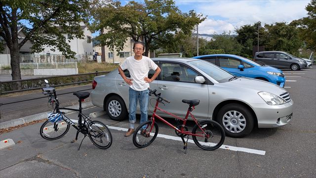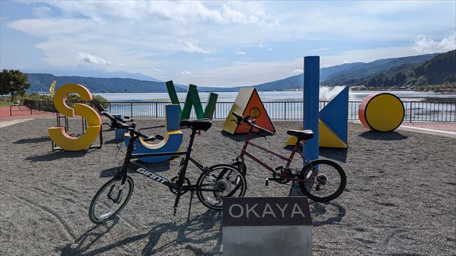 美味しい朝食を頂いた後、岡谷湖畔公園駐車場にアリオンを停めてミニベロを組み立ててスワイチ開始。
