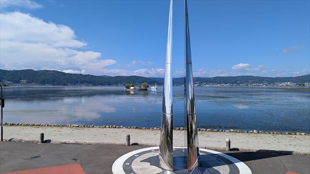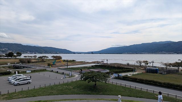 11:45 赤砂崎公園の丘の輪から見た諏訪湖