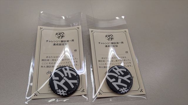 指定の3つのポイントで写真を撮って観光案内所でスワイチ認定書と缶バッジを頂いた。