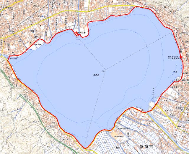 スワイチコース(中央上部の岡谷湖畔公園駐車場がスタート&ゴール地点)