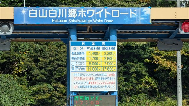 9:15 白山白川郷ホワイトロード料金所 軽四片道1,400円