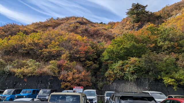 紅葉はまずまずだったが駐車場はどこも一杯で止めるのが大変だった。