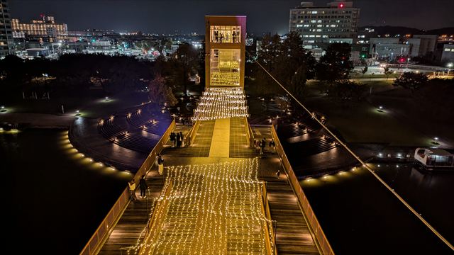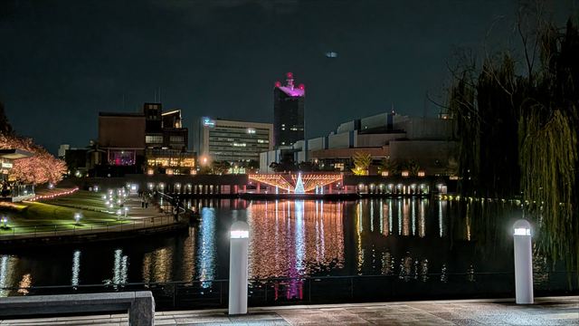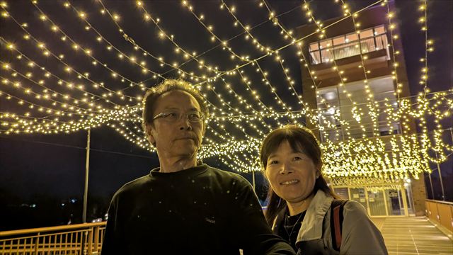最後は真理子のリクエストで富岩運河環水公園へ寄って天門橋からの夜景やイルミネーションを楽しんだ。