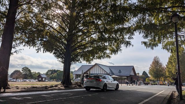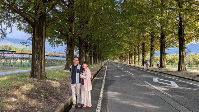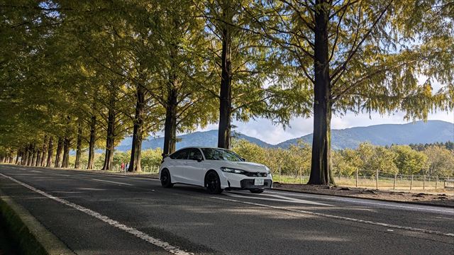 早めに出発したおかげでメタセコイア並木で三男のcivicの車を走らせながら真理子と撮影。