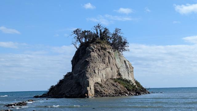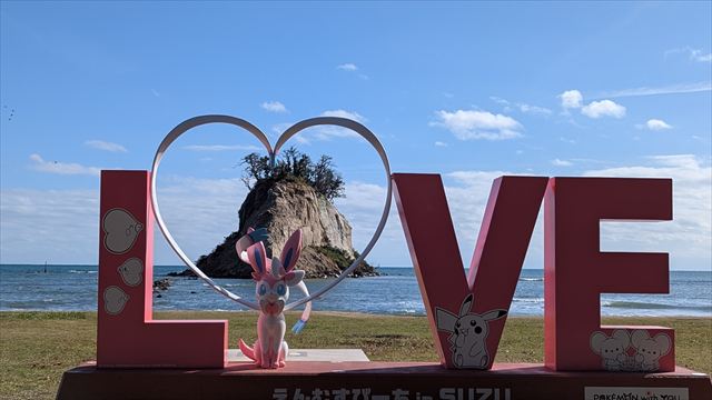 イカキングに驚いている母と記念撮影をして見附島へ移動。