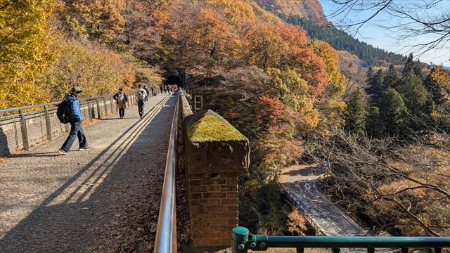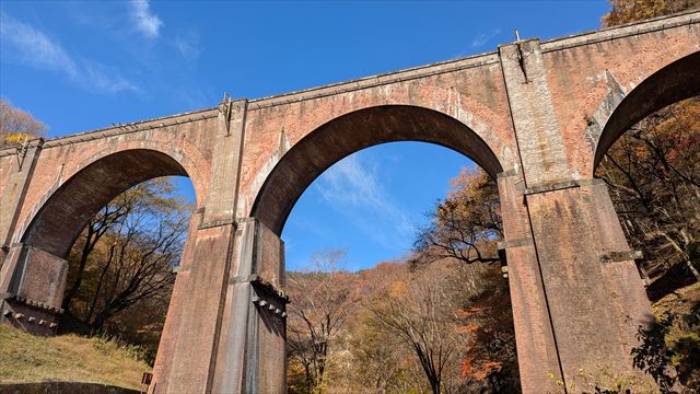 約5時間でめがね橋に到着し国内で最大のレンガ造アーチ橋の碓氷第三橋梁(めがね橋)を見学。