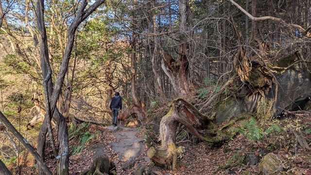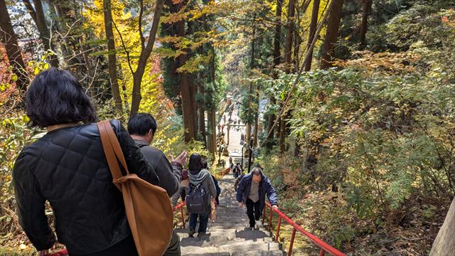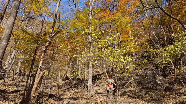長くて急な階段を登り轟岩へと向かったがトレッキングシューズが必要なほど急な岩場で大変だった。