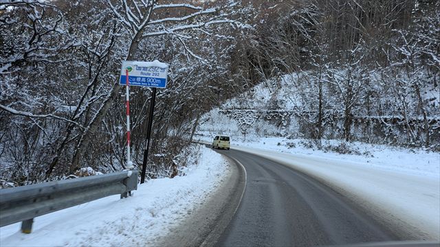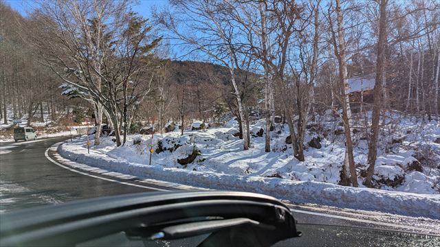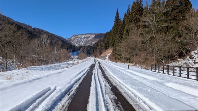 9:53 所々雪が解けて舗装路麺