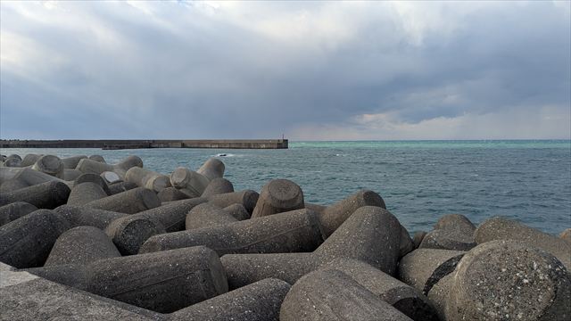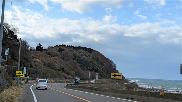 13:58 道の駅の後ろは日本海