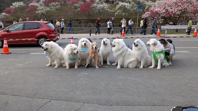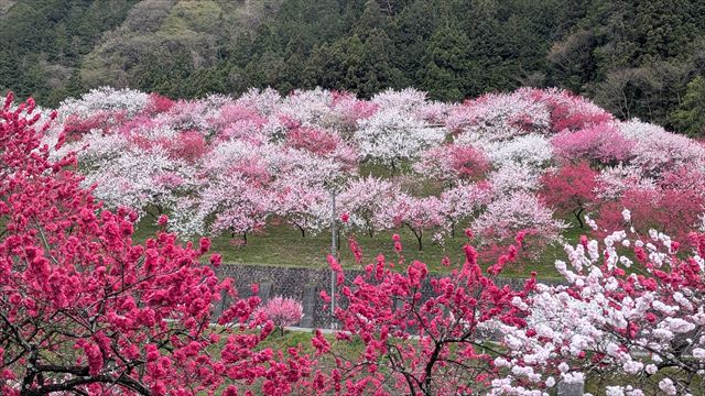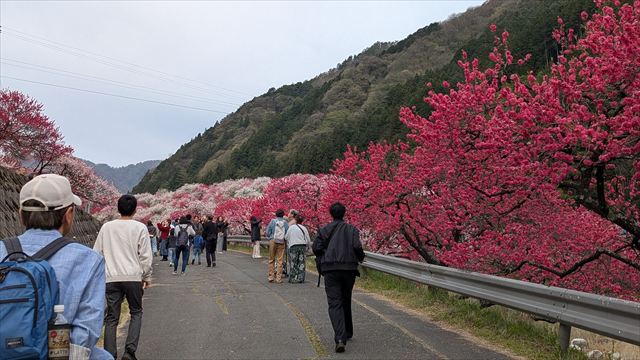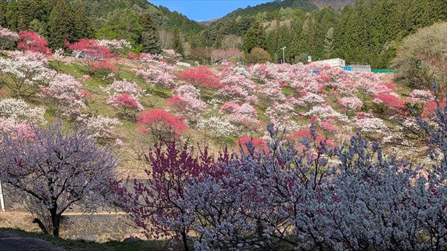 実際に見る花桃は見応え十分で白、桃、赤の3色だけだが見事なグラデーションだった。