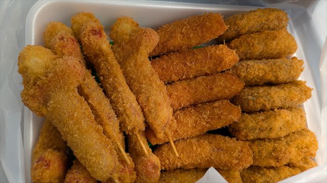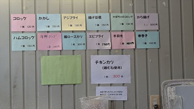 かかし(150円×8)、コロッケ(120円×8)、ハムコロッケ(150円×5)、豚ロースかつ(300円×3)を購入。