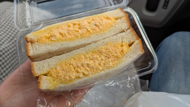美味しいかかしに大満足し、たまごサンドを持って車から降りて歩きながら一口かじったとたん持っていたたまごサンドが消えた!