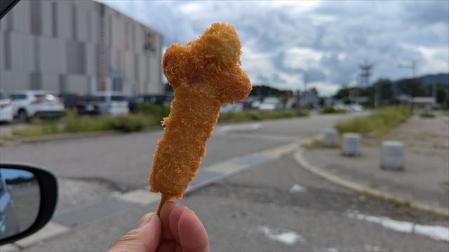 揚げたてをすぐに頂きたくて輪島キリコ会館近くへ移動してかかしをパクリ。