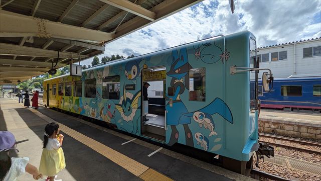 12:49 道の駅穴水に止まっていたポケモン列車(真理子撮影)
