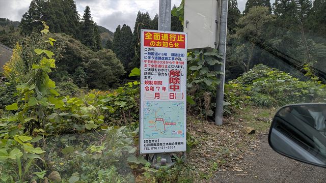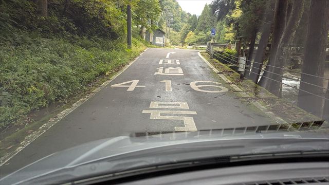 そこからしばらく国道416号線を福井方面に向かって進むと車が1台やっと通れるくらいの酷道へと変わる。