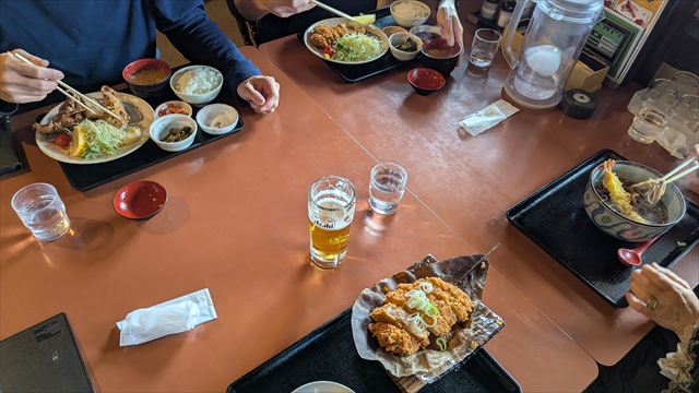 つるや商店ではんたい玉子を頂き、あんき屋で昼食を頂いた。