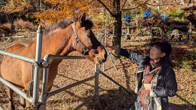 最後は匠の館・森の水族館で馬と戯れて真理子も大満足。