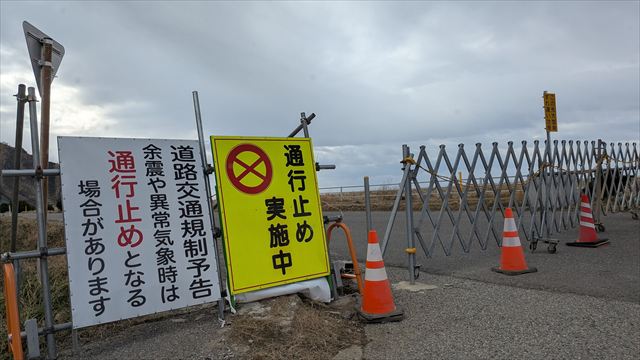 13:16 震度3の地震のためか通行止めになっていた(真理子撮影)