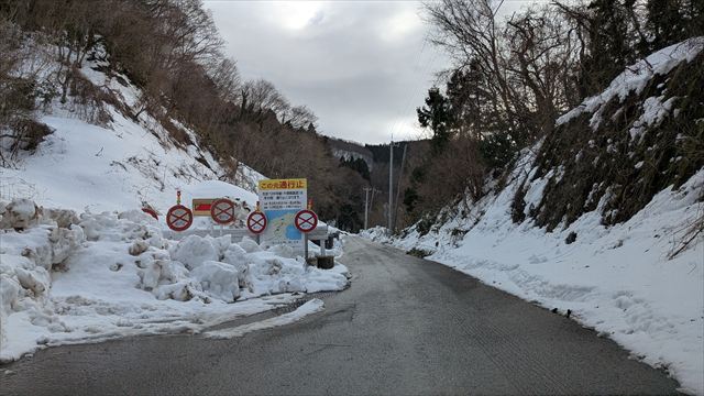 通行止めのゲート横を入ったのは自己責任で仕方ないが雪の壁に行く手を阻まれた。
