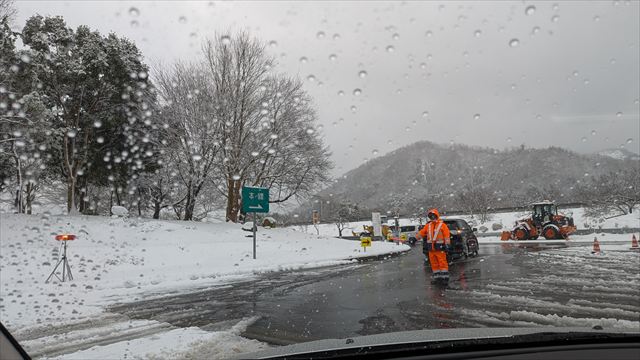 前日は国道8号線や北陸自動車道が通行止めで心配していたが積雪は大したことはなかった。
