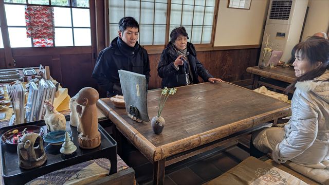 15:01 展示品に見入る真理子と三男
