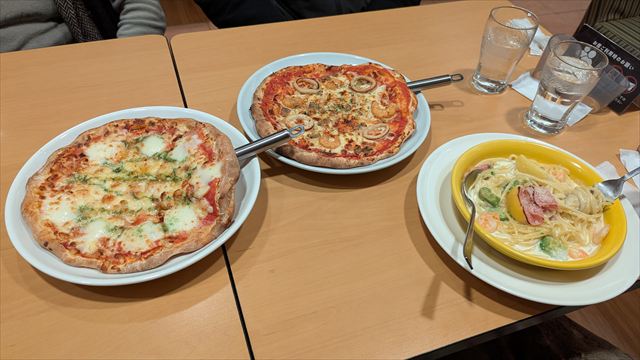 19:05 シーフードピザ、マルゲリータピザ、レモンクリームパスタ