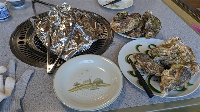 お昼は以前数回行ったことのある八味で定食と焼き牡蠣を頂いてきた。